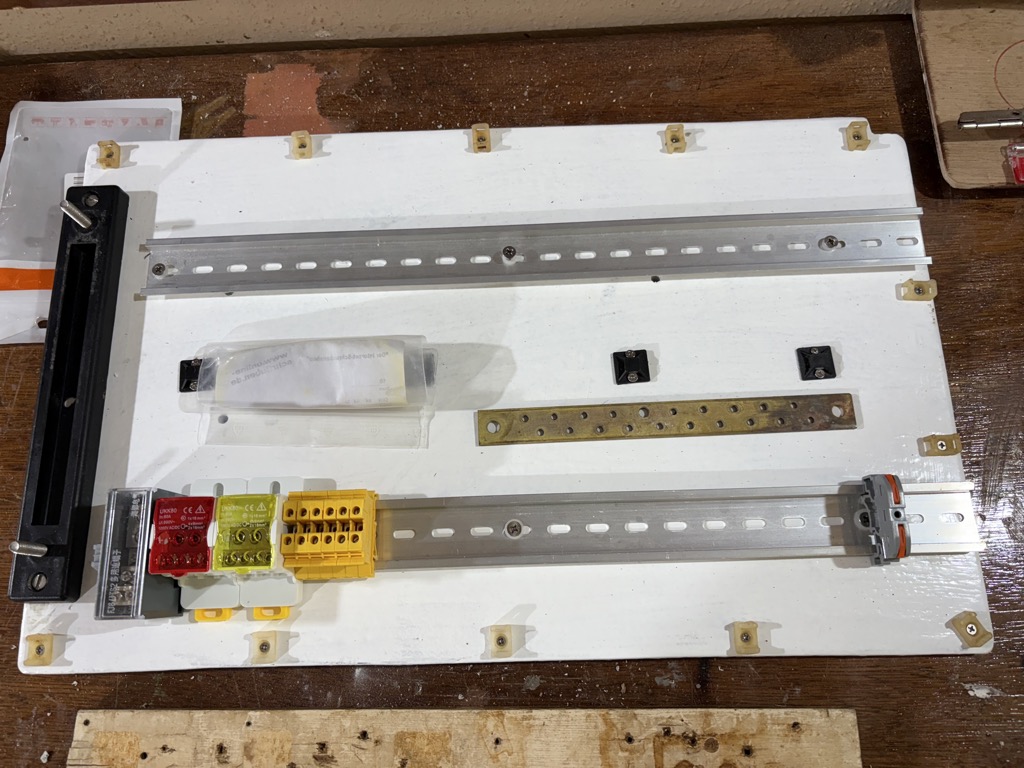 November 14: Sealed with epoxy, primed, painted and DIN rails mounted. The GND bus bar still needs electrolytical coating with Zinc.
